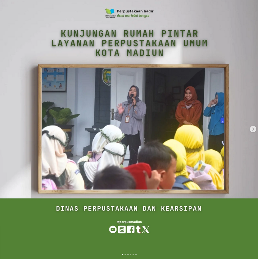 Kunjungan Rumah Pintar dari Adik-adik TK Kota Madiun Menginjak Hari ke-6, Unstopable!!! February 11, 2025 admin Seru to the max!!! Tenang, masih banyak adik-adik TK Kota Madiun lain yang akan menikmati wisata literasi di @perpusmadiun.. Salam Literasi