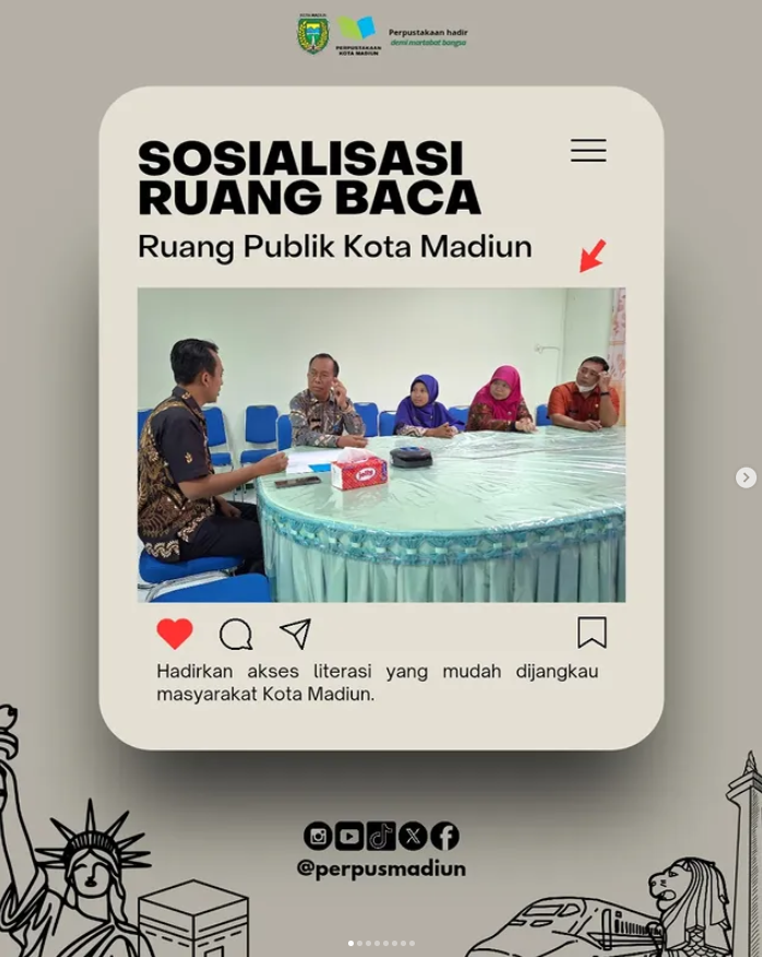 Madiun – Dinas Perpustakaan dan Kearsipan Kota Madiun terus menggencarkan sosialisasi penyediaan ruang baca di berbagai ruang publik. Pada tahap lanjutan ini, lokasi yang menjadi sasaran antara lain RSUD Kota Madiun, Lawu Plaza, dan Plaza Madiun.