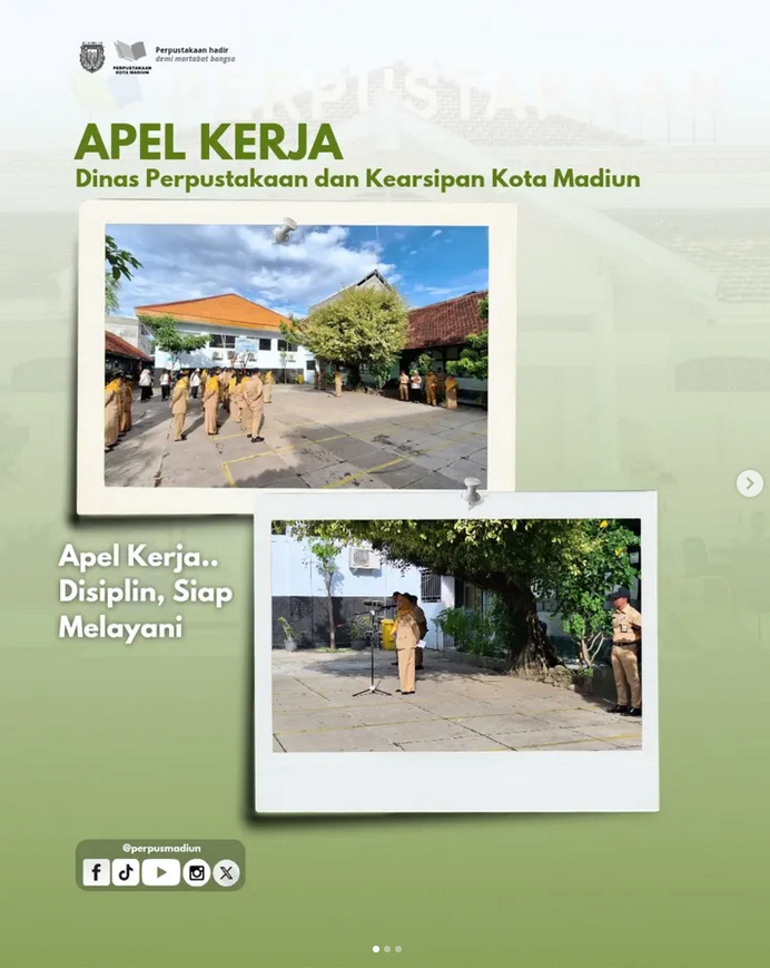 Madiun, 6 Januari 2026. Pelaksanaan apel kerja Dinas Perpustakaan dan Kearsipan Kota Madiun sebagai wujud disiplin, tanggung jawab, dan kesiapan…