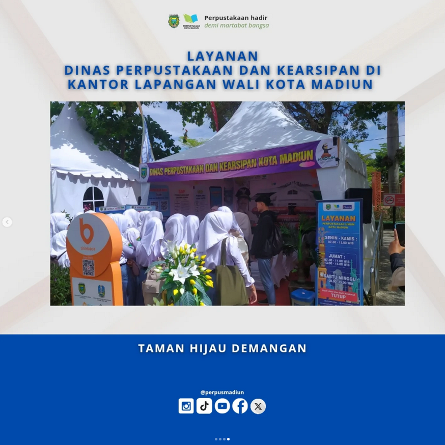 Madiun – Dinas Perpustakaan dan Kearsipan Kota Madiun kembali hadir memberikan layanan kepada masyarakat pada hari kedua kegiatan Kantor Lapangan…